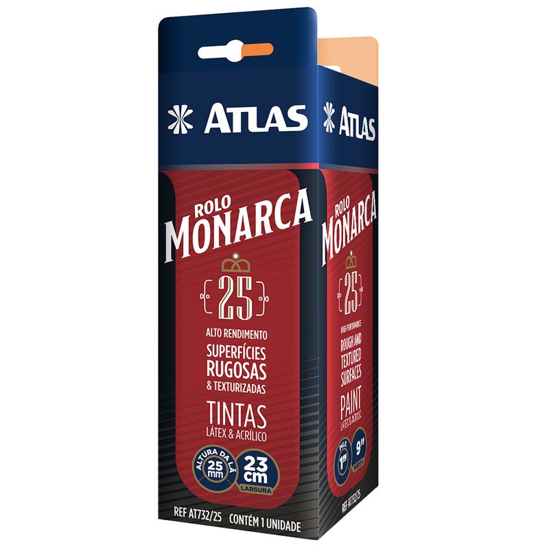 O Rolo de Lã Sintética Monarca 23cm AT732/25 da Atlas é ideal para pinturas em superfícies semi-rugosas e rugosas. Com alta capacidade de retenção de tinta, proporciona excelente rendimento e acabamento profissional.