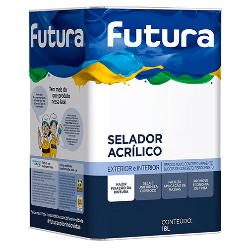 Se o assunto é preparação de reboco, então o Selador Acrílico Futura aparece na conversa. Afinal, tem ótimo poder de cobertura e rendimento, além de ser fácil de aplicar. É indicado para selar e uniformizar a absorção de superfícies de áreas internas de reboco novo, Concreto aparente, blocos de Concreto, fibrocimento e massa fina.